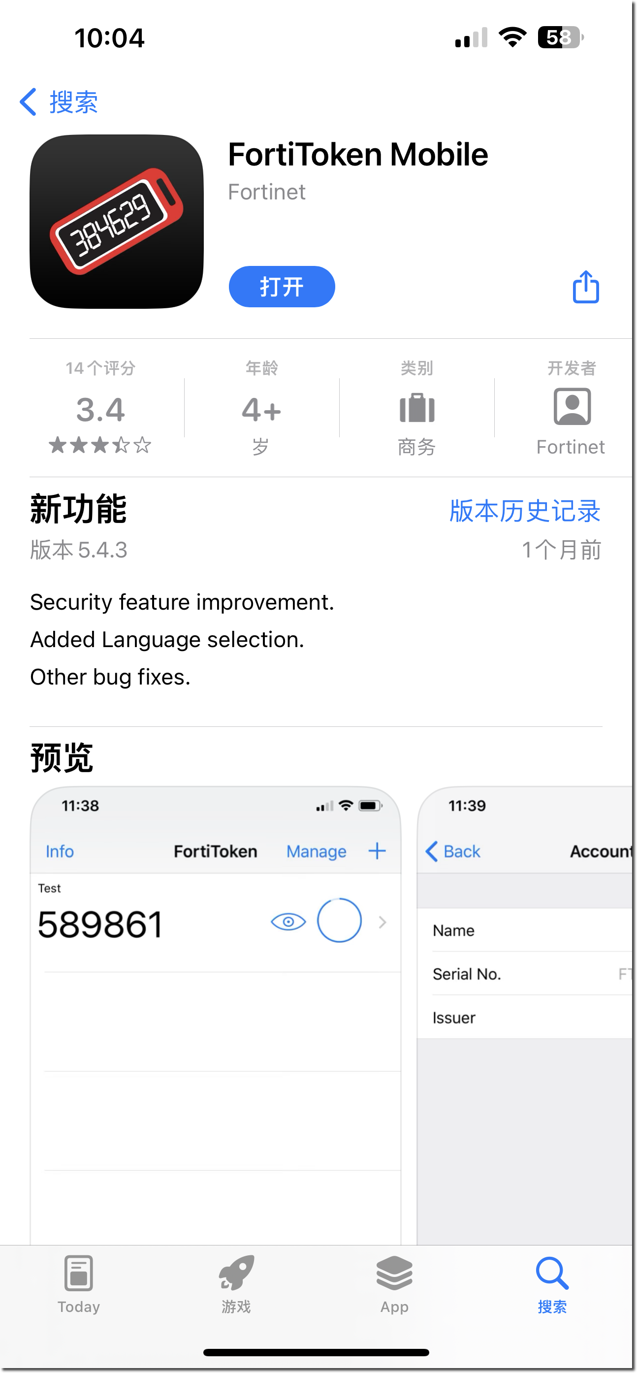 iPhone 直接在 Apple App Store 搜索“FortiToken Mobile”。